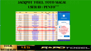 Bukti Pembayaran Kemenangan Rp.9.000.000 Juta permainan TOGEL TOTO MACAU POOL USER ID: PENTO**** LUNAS!